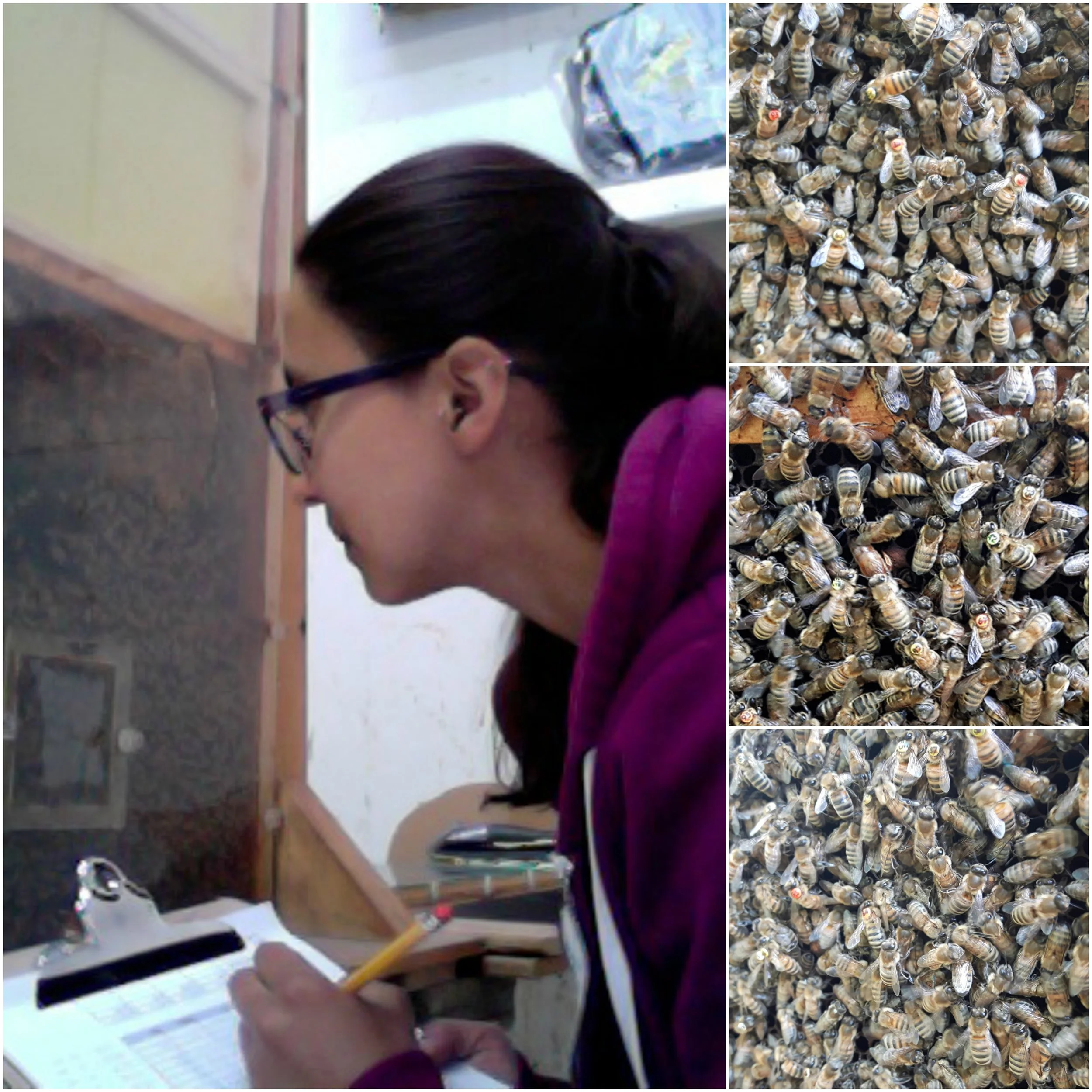 Nuria listens while tending to her bees at the Honey Bee Research Centre in Guelph, Ontario.